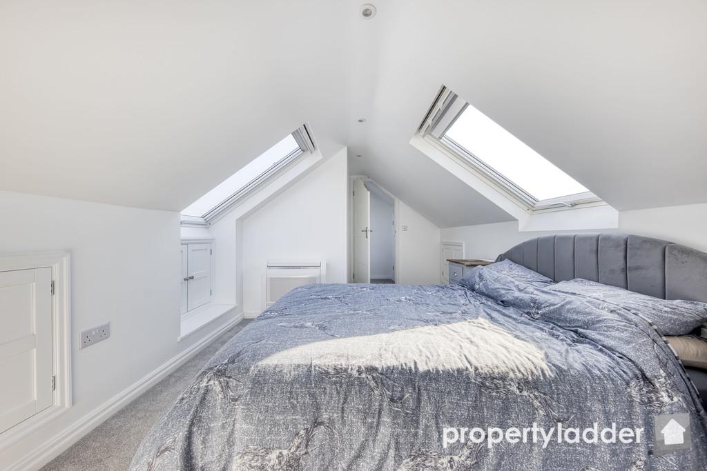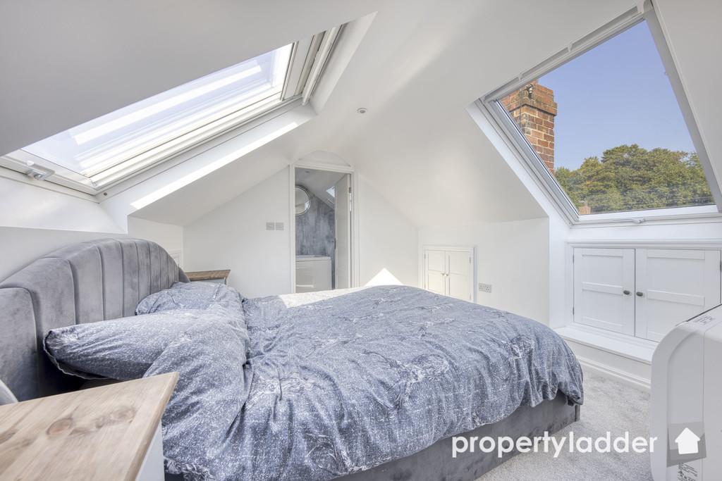 Bedroom 1: 4.35m max x 2.97m. A light airy space with access to eaves storage, velux windows and door to: