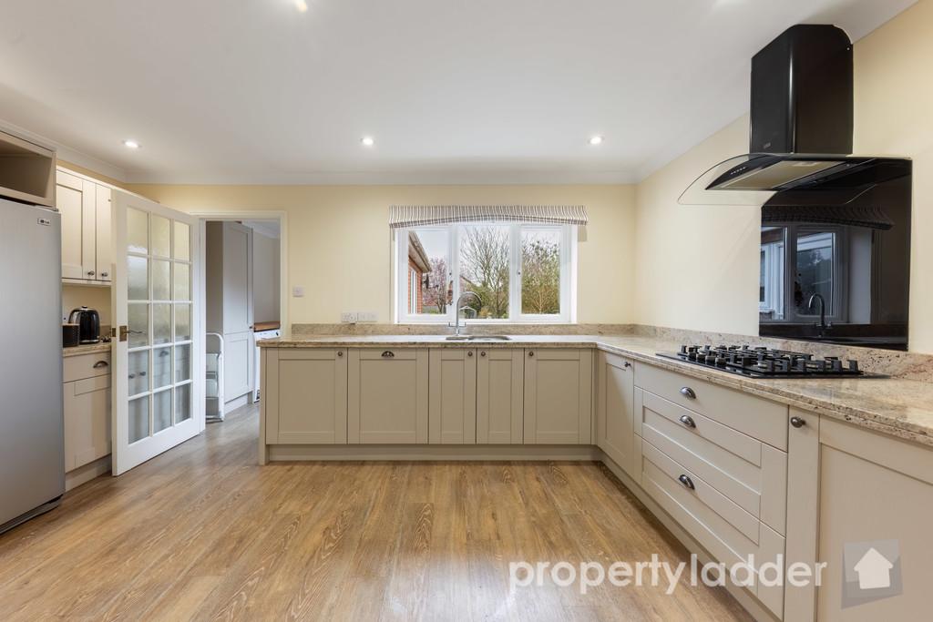 The modern fitted kitchen is well arranged with a range of units and work surfaces and is complemented by a separate utility room, keeping laundry and additional storage neatly tucked away.