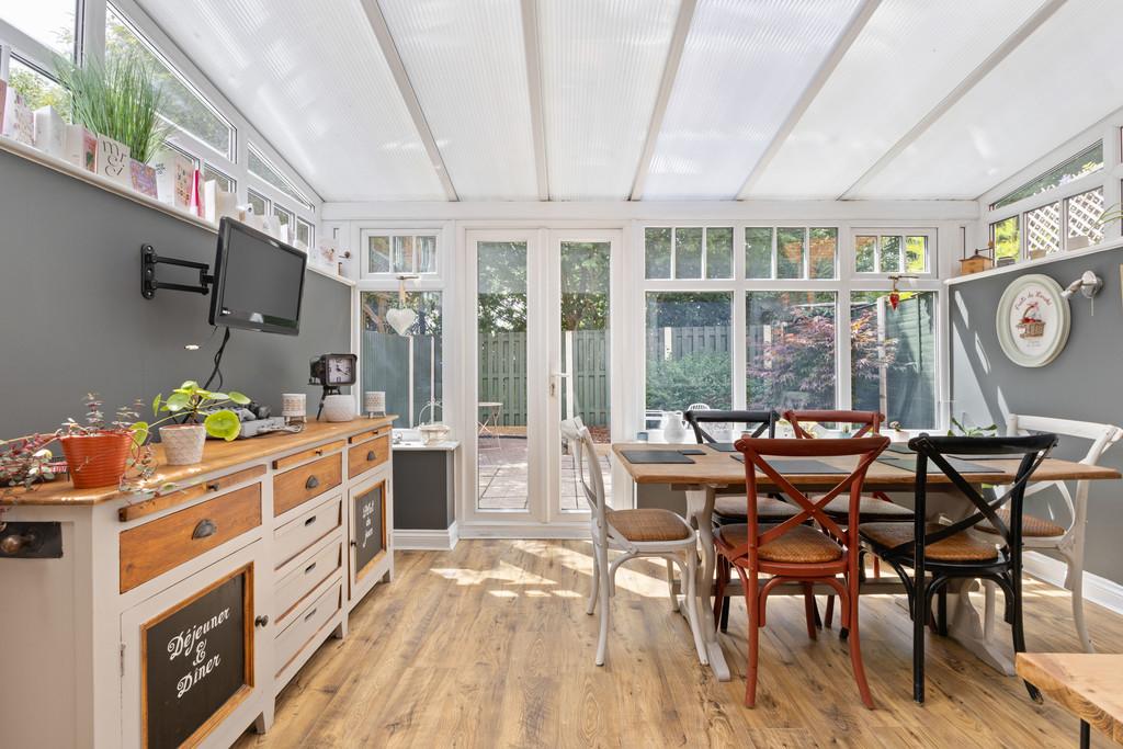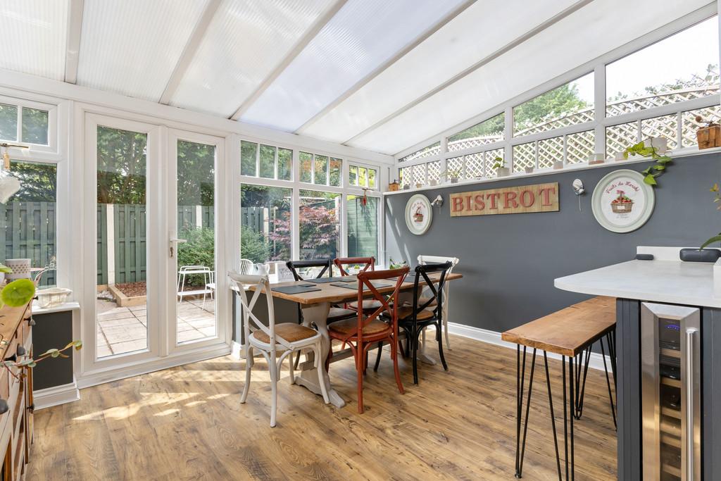 The ground floor features a stunning, contemporary kitchen that flows seamlessly into a light-filled dining room with views over the rear garden - the perfect space for entertaining or relaxed family meals. A convenient downstairs WC is also on offer, and the integral garage has been partially converted to create an additional room, ideal for use as a home office, snug, hobby room or guest space, while the remaining garage section still provides useful storage.