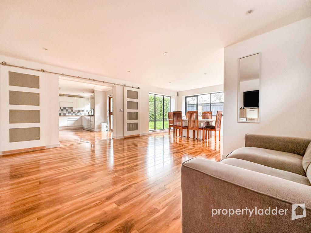 Set on a generous plot, of around quarter of an acre, the property has undergone a dramatic transformation with a beautifully light-filled extension that breathes new life into the layout. High ceilings, expansive glazing, and clean architectural lines give the space a modern, open-plan feel - ideal for contemporary living.