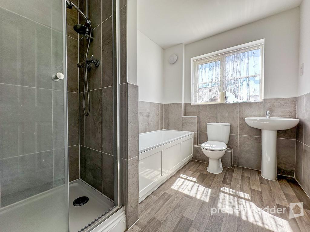FAMILY BATHROOM 7' 6" x 7' 6" (2.29m x 2.29m) Modern and well-appointed, the bathroom includes a panelled bath, enclosed shower, WC, wash basin, and tasteful tiling.