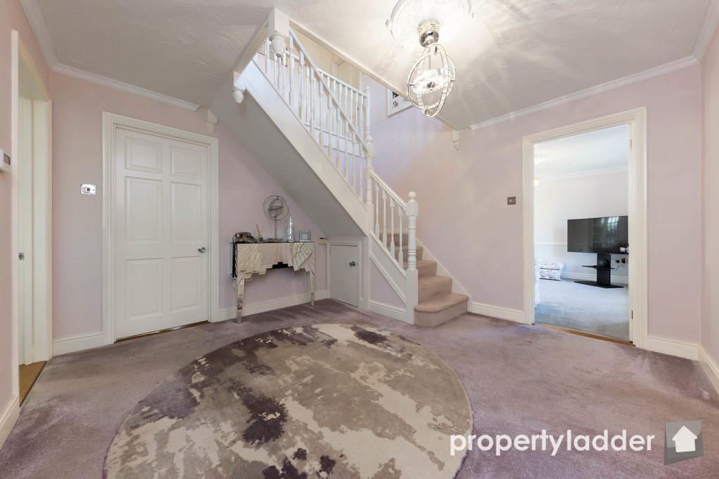 The ground floor centres around a magnificent entrance hall, setting the tone for the elegance found throughout. A bright and airy lounge with garden views, a formal dining room, and a conservatory offer a variety of spaces for both relaxation and hosting. The showpiece kitchen/breakfast room is fitted with contemporary cabinetry, an island unit, and ample dining space, creating a true hub of the home. Completing the ground floor are a dedicated study for home working and a well-appointed utility room. Upstairs, the principal bedroom suite impresses with its luxurious en suite shower room and a substantial walk-in dressing room. The second bedroom also boasts its own stylish en suite, while two further doubles and a generous single bedroom are served by a family bathroom.