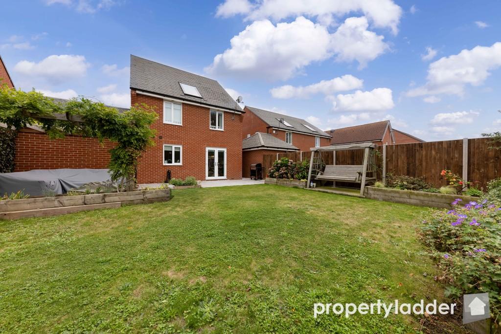 Outside, the property benefits from a private driveway providing off road parking for two vehicles, together with a large garage offering additional parking or storage space. Enjoying a tucked away position at the rear of the cul-de-sac, the rear garden offers a high degree of privacy and has been thoughtfully landscaped by the current owners. The garden features an extensive porcelain patio ideal for outdoor entertaining, a neatly maintained lawn, and well designed flower beds, creating an attractive and low maintenance setting.