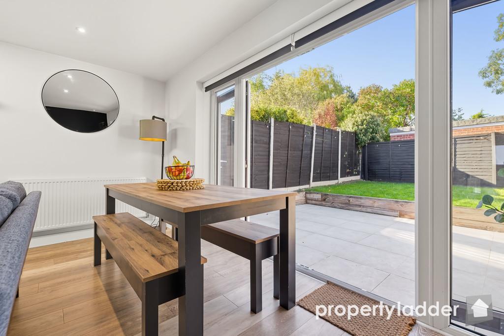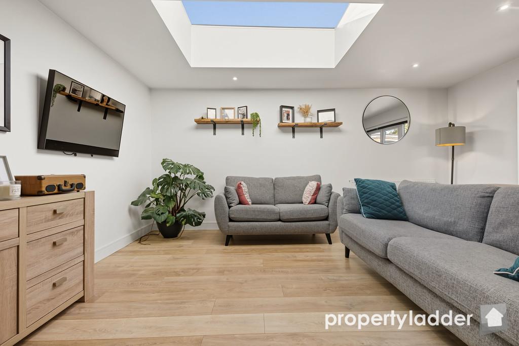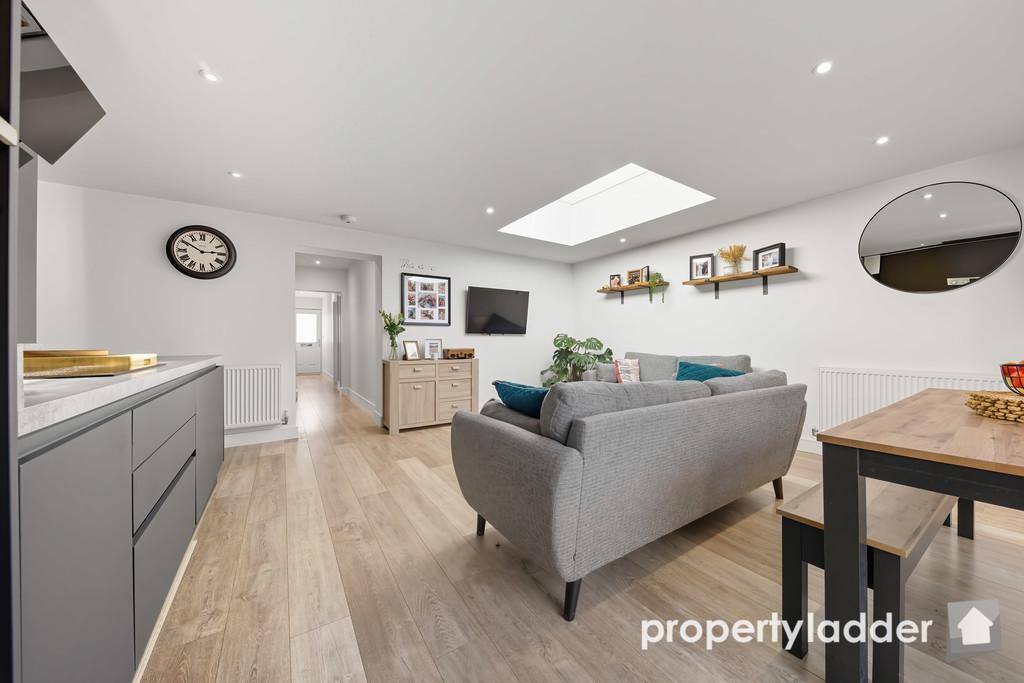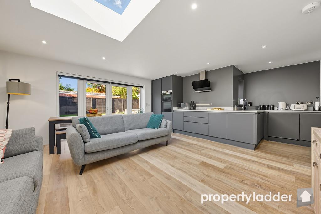 - Stunning open plan kitchen-dining-living room with skylight and garden access