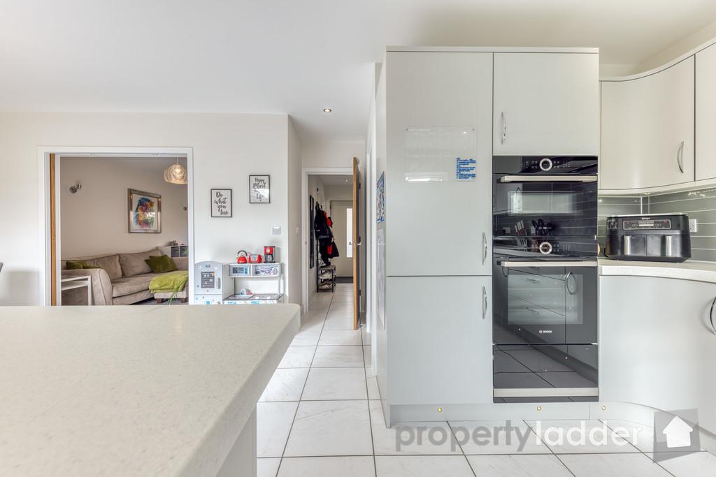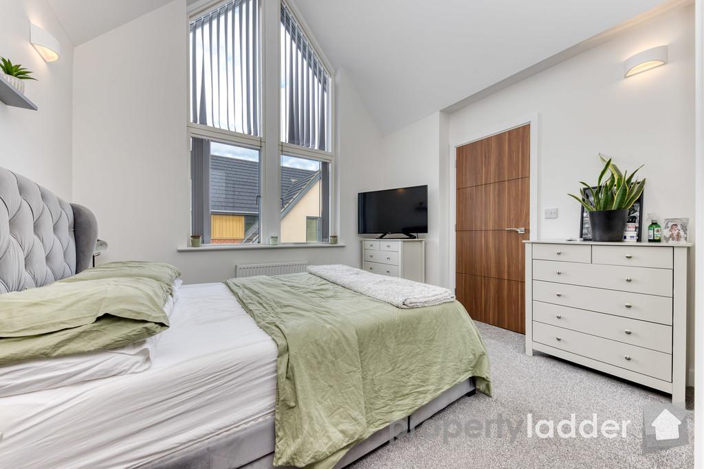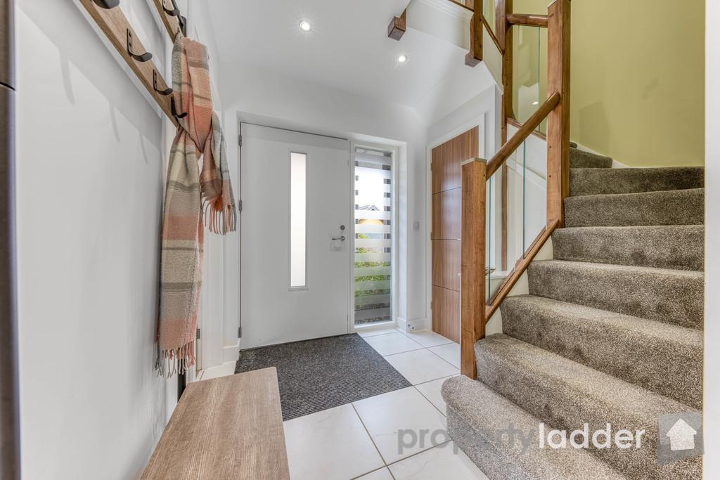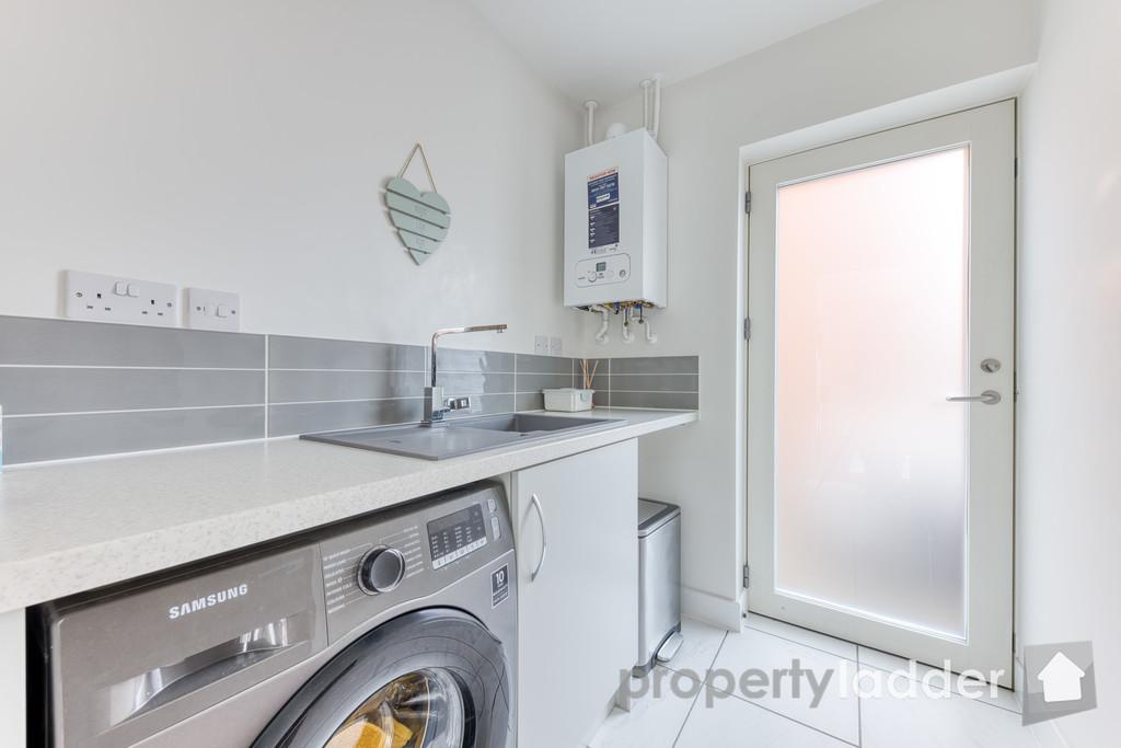The home opens with a welcoming entrance hall leading to a ground floor WC and a bright living room that seamlessly connects to a contemporary kitchen/diner. The kitchen is equipped with high-spec integrated appliances including a fridge freezer, double oven, warming drawer, dishwasher, and wine fridge, while a separate utility room offers additional worktop space, a sink, and a secondary access point. Upstairs, there are three double bedrooms with built in wardrobes, including a master suite featuring a stylish en-suite shower room and impressive high ceilings. A modern family bathroom and spacious landing complete the first floor. Further highlights include underfloor heating, triple glazing, and an NHBC warranty valid until December 2030, making this modern home as practical and efficient as it is beautifully designed!