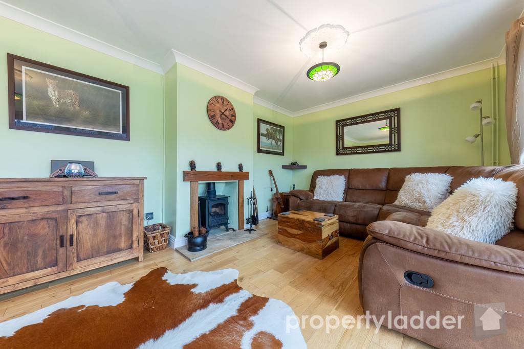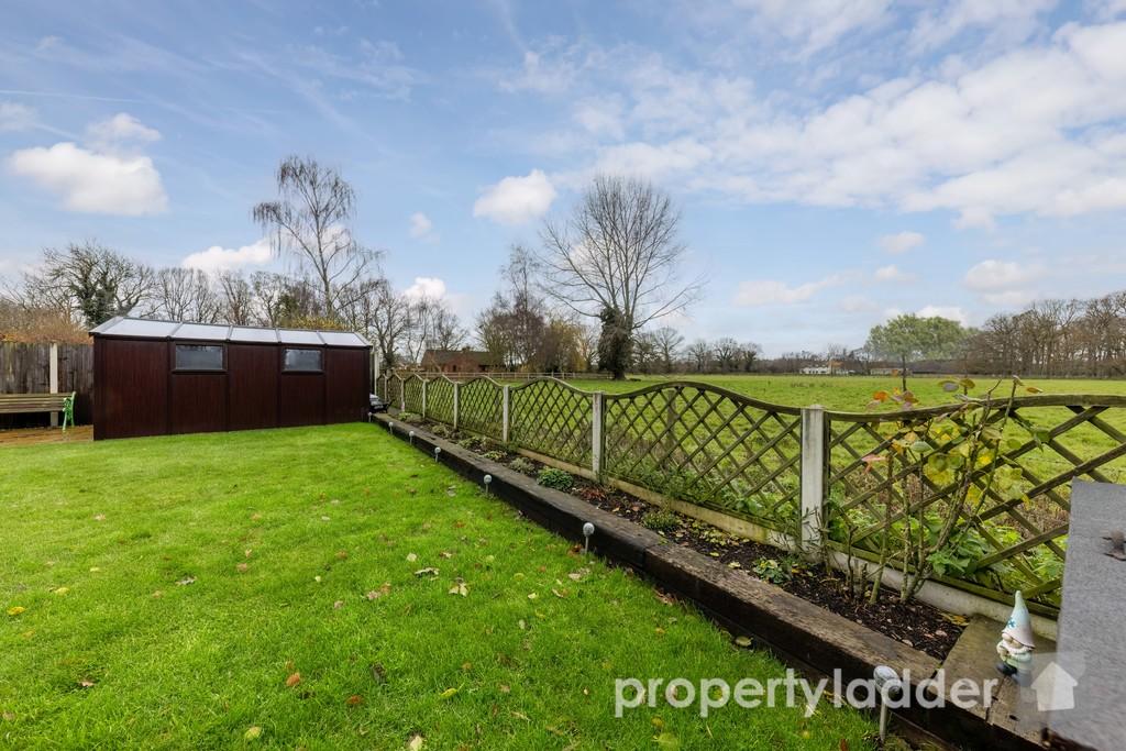 OUTSIDE The property also offers ample off-road parking, with a large concrete driveway accessed via a substantial five-bar gate, providing both convenience and added privacy. To the rear, the garden is of an exceptional size and mainly laid to well-maintained lawn, complemented by a patio area and neatly arranged flower beds. Beyond the garden, the rear outlook continues uninterrupted across greenery, offering a peaceful and private setting. Additional features include useful storage sheds and a versatile outbuilding at the rear of the garden, fitted with light, power, and heating, making it ideal for a home office, workshop, or hobby space.