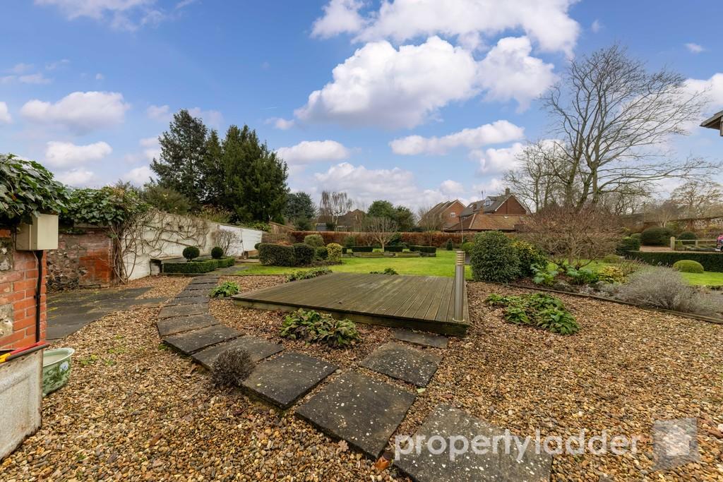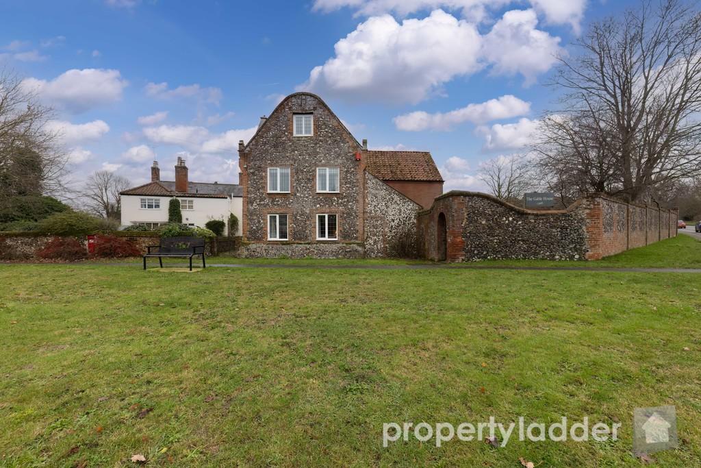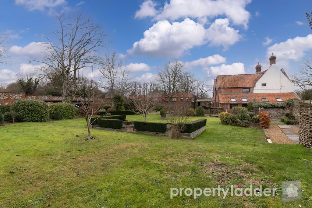 The garden is walled to the boundary with Norwich Road and a personal gate allows access to the front, where the Horstead war memorial can be found. This attractive space overlooks the popular Recruiting Sergeant pub and the Farm to Fork delicatessen.