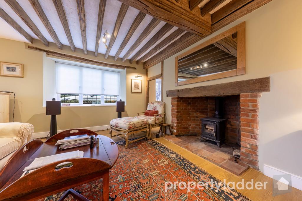 SITTING ROOM 24' 3" x 17' 5" (7.39m x 5.31m) A well-proportioned room with a beamed ceiling, exposed chimney breast and inset wood burner.
