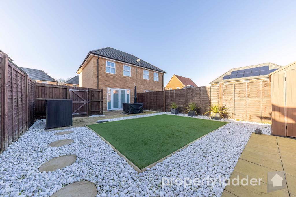 OUTSIDE Outside, the property benefits from its own private driveway to the side of the house, providing off road parking for two vehicles. The rear garden is non overlooked and designed for low maintenance, featuring a combination of patio and artificial lawn. The garden is further enhanced by an outdoor shed, offering practical and convenient storage space.