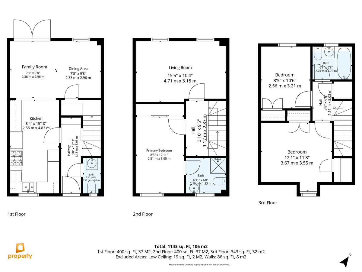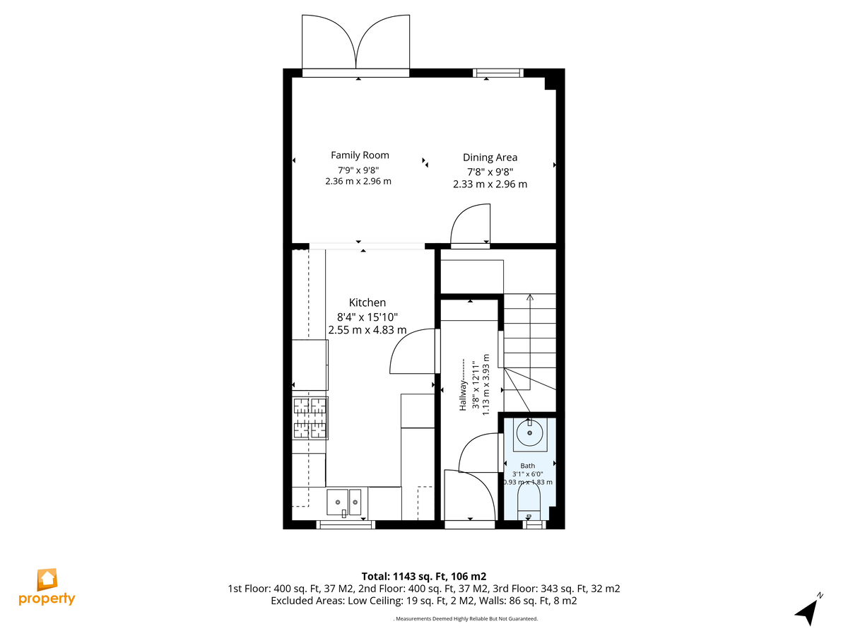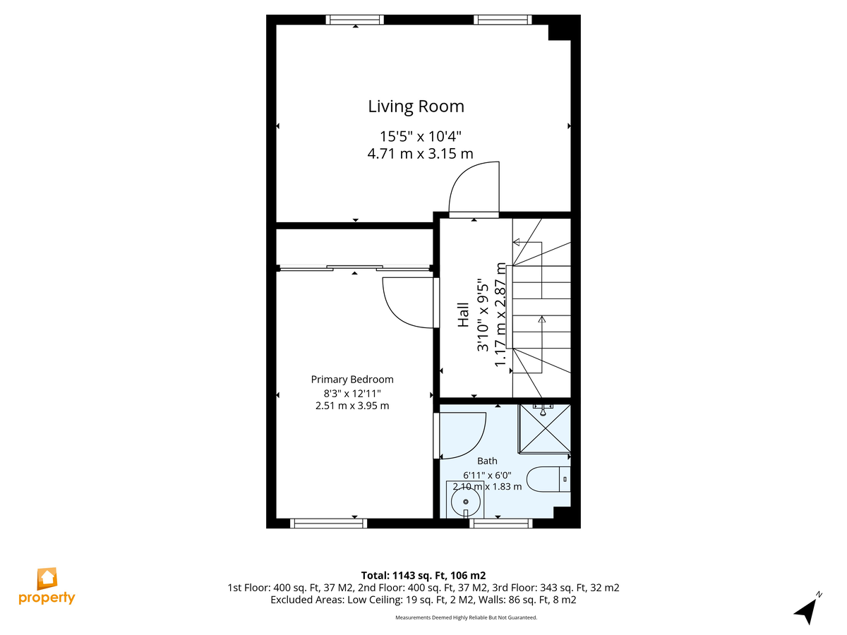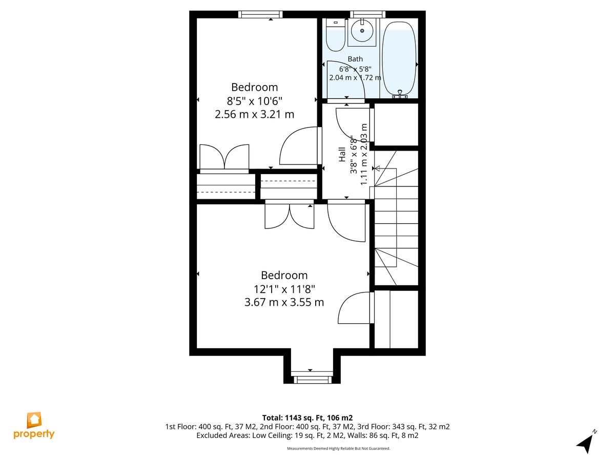 TOTAL AREA 1,143 sq ft / 106 sq m