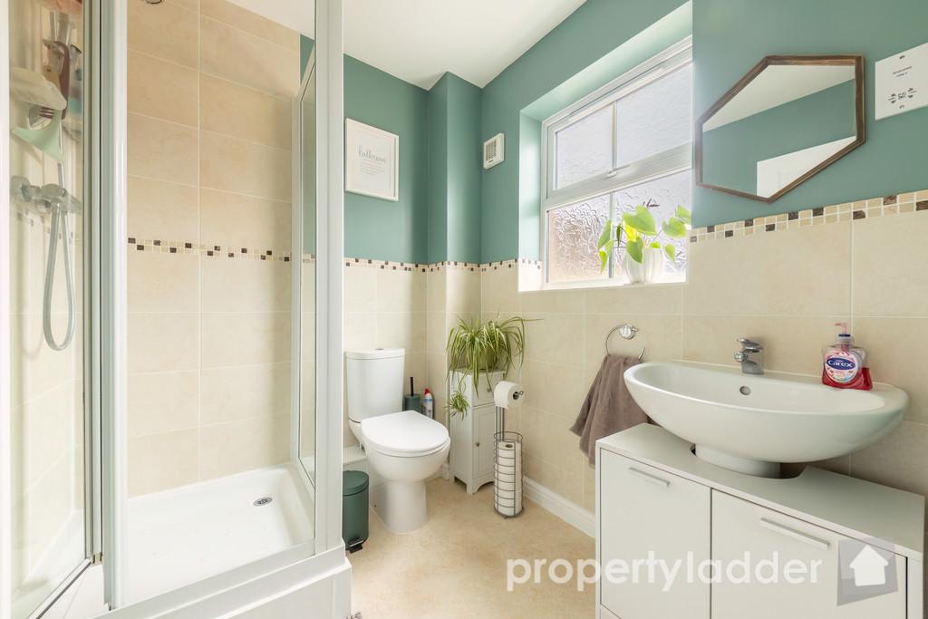 On the first floor is a generous living room, offering excellent flexibility and easily capable of serving as a large fourth bedroom if required. Also on this floor is the principal bedroom, complete with built-in wardrobes and a stylish en suite shower room, creating a comfortable private retreat.