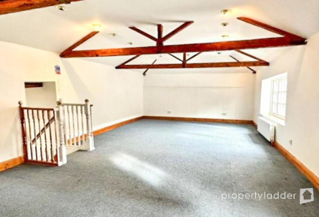 To the first floor is an impressive open area featuring a vaulted ceiling with exposed beams, creating a particularly striking and adaptable space suitable for storage, studio use, offices or further commercial adaptation (subject to any necessary consents).
