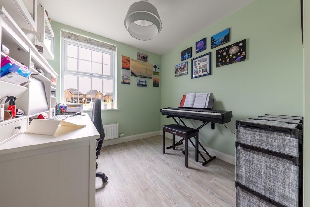The property is arranged in an attractive L-shaped layout, flooding the home with natural light and creating a wonderful sense of flow. A welcoming entrance hall leads to a striking dual-aspect kitchen dining room - a true family hub with space to cook, dine and gather. Complementing this is a separate utility room, a dedicated study ideal for home working, and a ground floor WC. The dual-aspect living room is both spacious and inviting, with French doors opening onto the rear garden for effortless indoor-outdoor living.