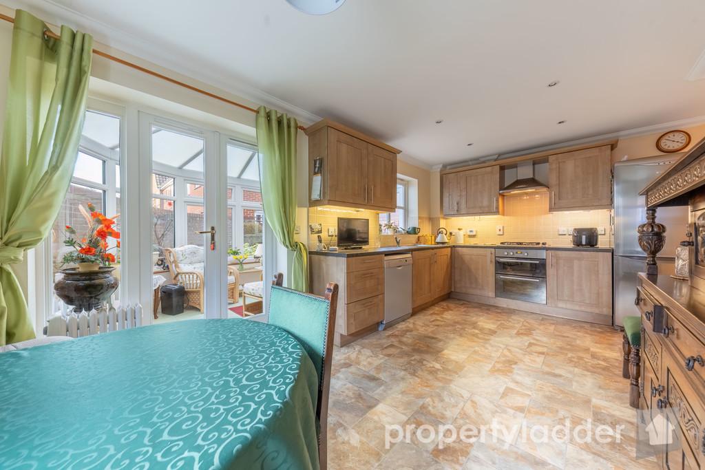 Offering generous and well balanced accommodation throughout, the property features a welcoming entrance hall, a spacious dual aspect living room filled with natural light, and a convenient ground floor WC. The heart of the home is the expansive kitchen/diner, boasting ample worktop space, with double doors opening into a bright and airy conservatory to the side. Upstairs, the property continues to impress with four well proportioned double bedrooms, including a principal bedroom with its own en-suite shower room, complemented by a family bathroom.