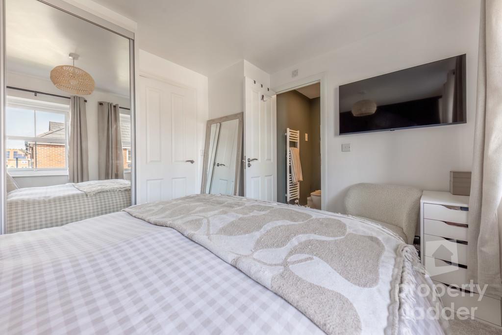 The property welcomes you with a small entrance lobby leading to a convenient ground floor WC and a spacious living room featuring a large under stairs storage cupboard. To the rear of the ground floor, a contemporary kitchen/diner is fitted with integrated appliances including a dishwasher, washing machine, fridge and freezer, and enjoys views over the enclosed garden! Upstairs, there are three well proportioned bedrooms, two of which benefit from built in wardrobes, while the master bedroom also boasts a modern en-suite shower room. A sleek family bathroom completes the first floor.