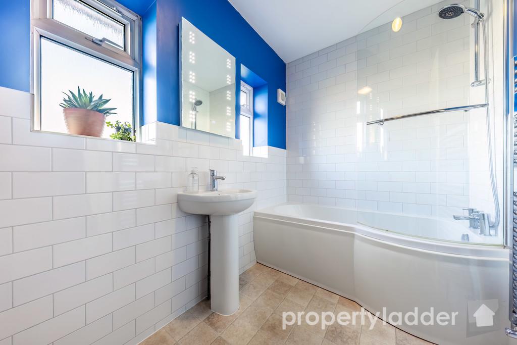 Upstairs, there are three well-proportioned bedrooms offering flexibility for family life, guests or working from home. The bathroom has also been refitted by the current owners, presenting a sleek, contemporary suite finished to a high standard.