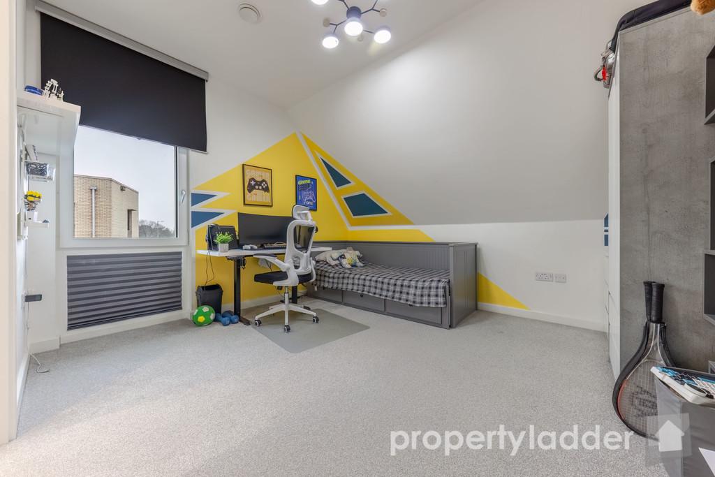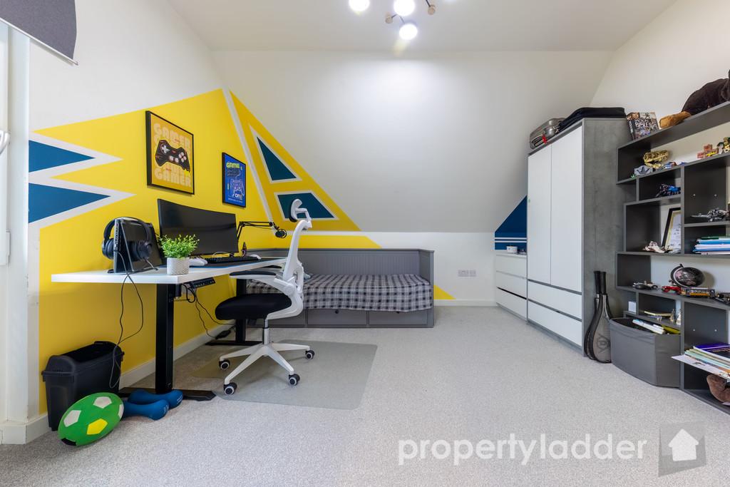 - Loft fully floored and ready for use; garden end offers enhanced privacy