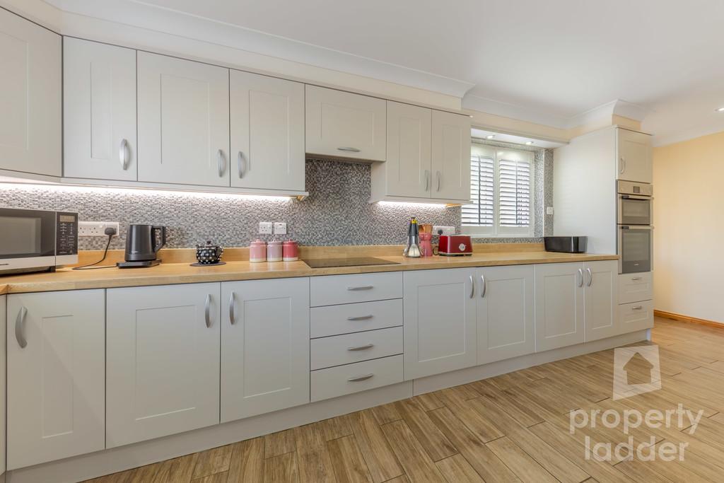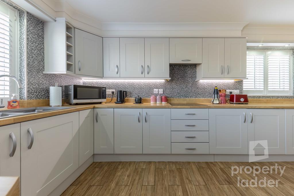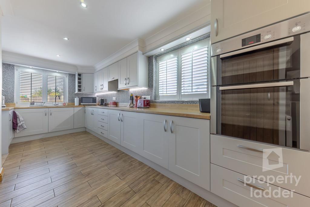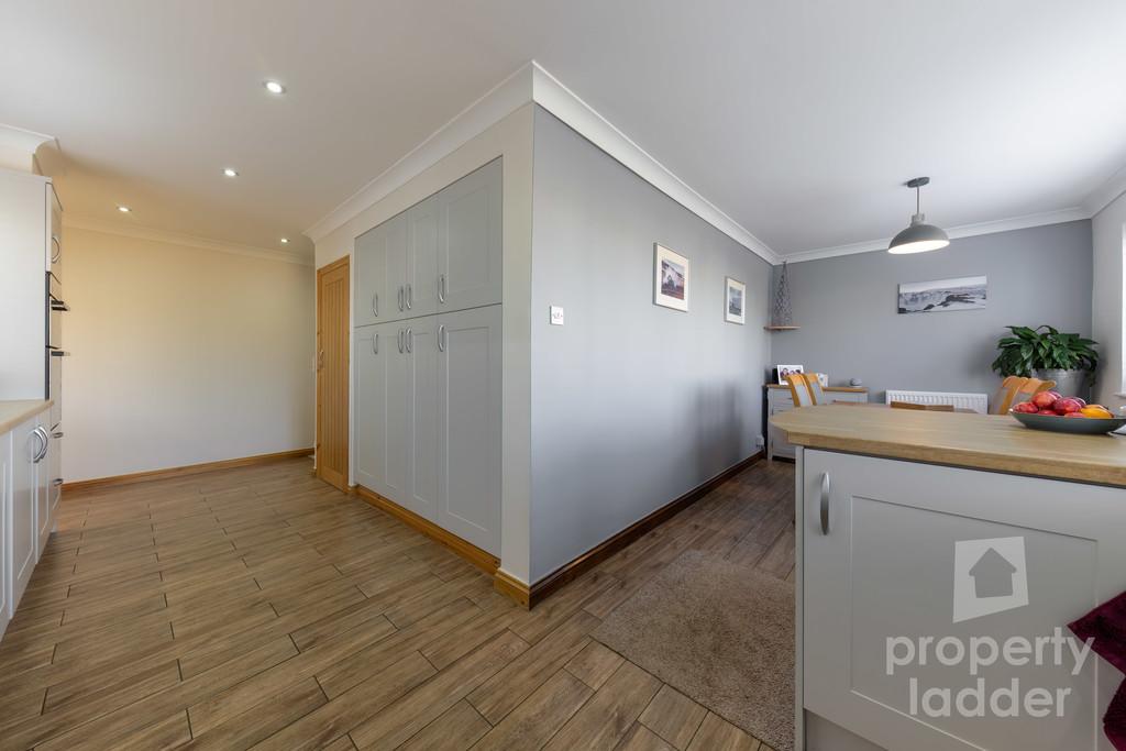 Step inside and you are greeted by a spacious entrance hall, leading through to the heart of the home-an impressive L-shaped kitchen and dining room. Thoughtfully designed with stylish cabinetry and integrated appliances, this space is both practical and beautifully finished, ideal for everyday living and entertaining alike.