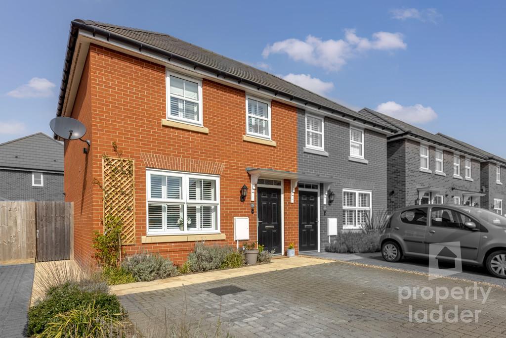 GUIDE £230,000 - £250,000. Modern two-bed semi detached home built in 2023 on the former Royal Norwich Golf Course. Features stylish open-plan living with a breakfast bar, landscaped garden, two double bedrooms, and two parking spaces. Former WC converted to storage. Sought-after Hellesdon location.