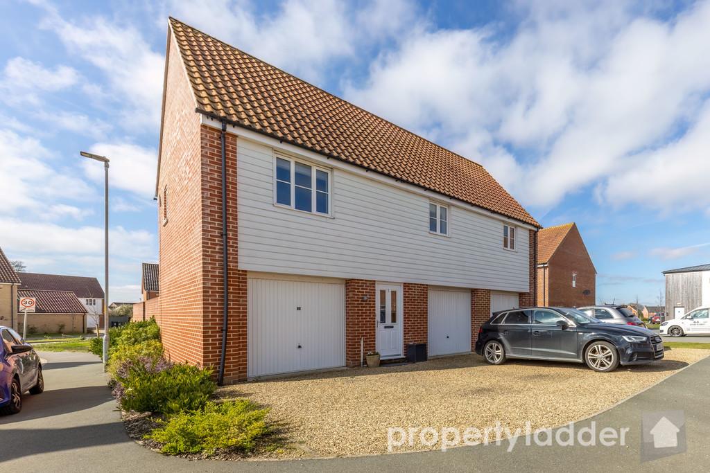 A 2018 built Hopkins detached coach house, featuring an integral garage with power and electrics, off road parking for two vehicles & private courtyard garden!